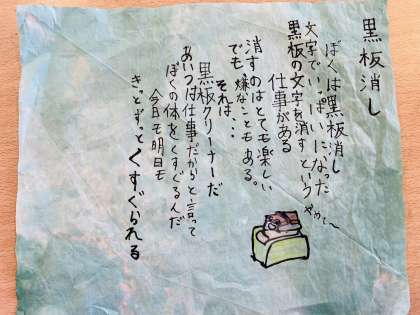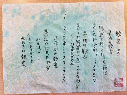 手づくりの詩を色染めした半紙に表現しました。