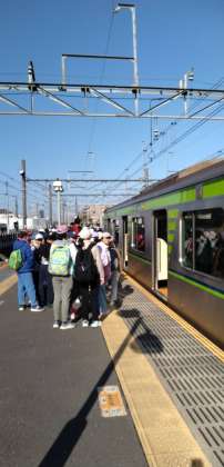 初めての電車での集団行動です。 マナーを守って乗車します。