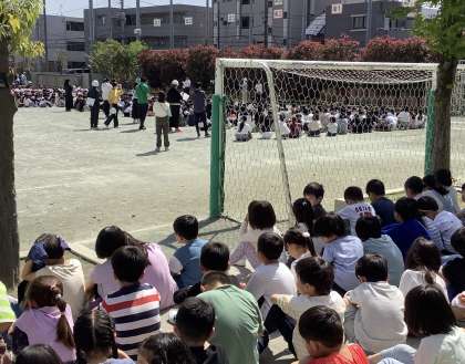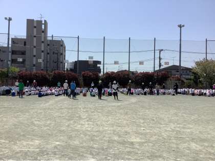 今年度初めての避難訓練がありました。どの学年も整然と行動し、1年生も、お兄さんお姉さんたちの様子を静かに見学することができました。校長先生からは、「避難訓練は命に関わることなので、百点でなければいけません。」というお話がありました。次回の避難訓練は1年生も参加します。