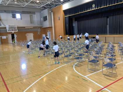 6年生が体育館や小アリーナの椅子並べをしてくれました。