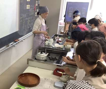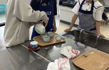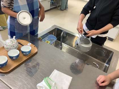 5年生は、家庭科の学習でお茶のいれ方を学びました。グループで協力して、おいしいお茶をいれることができました。