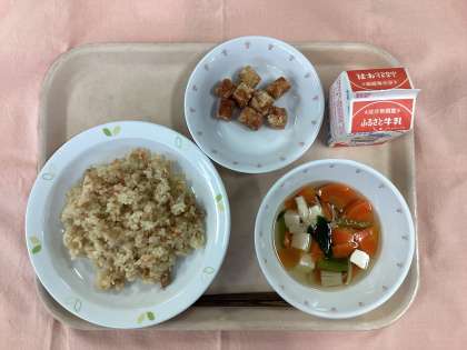 5月16日(木)の給食 公開日 2024/05/16 更新日 2024/05/16 できごと こぎつねごはんは、油揚げと野菜を甘辛く煮て、ごはんと混ぜた、給食の定番の混ぜご飯です。 油揚げがきつねの大好物とされていることや、油揚げの色がきつねの色に似ていることなどから、このような名前が付きました。みなさんも知っている「きつねうどん」も、油揚げがのっているので「きつね」という言葉が付いています。 いいね(0)