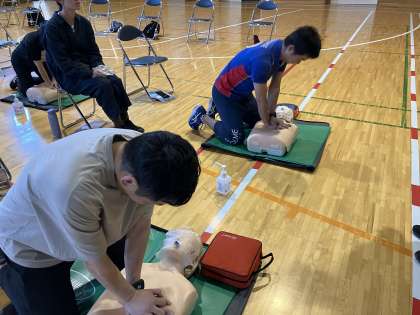 5/17 救急救命講習 教職員 公開日 2024/05/17 更新日 2024/05/17 できごと 6月から始まる水泳指導に向けて教職員が救急救命講習を受けています。 世田谷消防署や地域の消防団の方に教えていただき、救命技能を学びました。 いいね(0)