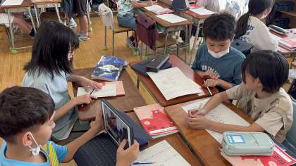 5/23 きいて、きいて、きいてみよう 5年生 公開日 2024/05/23 更新日 2024/05/23 できごと 国語でインタビューの仕方を学習しています。 初回はお試しインタビュー。 最初にインタビューの友達について知っていることを書き出してみると 「分からないな。」「意外と知らない。」などの言葉が聞かれました。 お試しインタビューをして困ったことや難しかったことから問いを立てて学習に取り組んでいきます。 いいね(0)