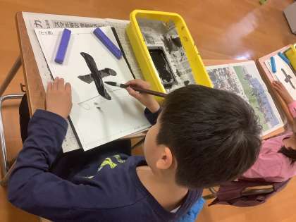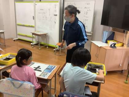3年生の書写では、「とん、すー、とん」を合言葉に練習しています。先週練習した、縦と横の書き方を活用して、「土」を書きました。