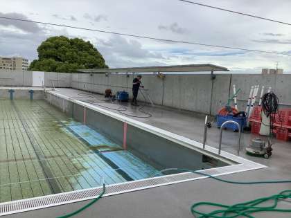 6月10日から始まる水泳指導に向け、プールの清掃も始まりました。