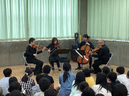 6/3 しもたかフィルの皆さんによる特別授業 5年生 公開日 2024/06/03 更新日 2024/06/03 できごと 音楽の特別授業として、しもたかフィルの関係者の皆様を招いて曲を演奏していただきました。 弦楽器の音色や音の響きを感じながら、聴くことができました。 しもたかフィルの関係者の皆様、ありがとうございました。 いいね(0)
