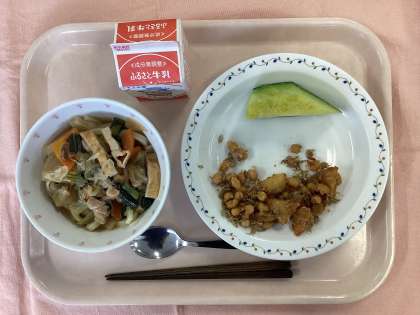 今日のくだものは、夏の始まりに旬をむかえるメロンです。 メロンには、いろいろな品種があります。皮に網目があるかどうかで、ネット系とノーネット系の2つに分けられます。また、果肉の色で青肉か赤肉に分けられます。今日のメロンは、ネット系青肉種の「アンデスメロン」です。果肉はきれいな緑色で、甘味が強いのが特徴です。もう一つの特徴として、皮のあみめがあります。これはただの模様ではありません。成長の途中で入った皮の表面のヒビにそって、果汁が染み出し、それが固まってできたものです。