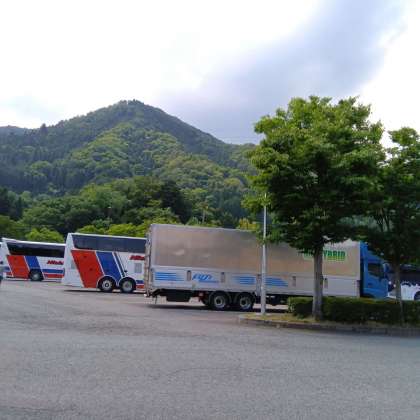 談合坂でトイレ休憩しました。少し早めに到着しそうです。