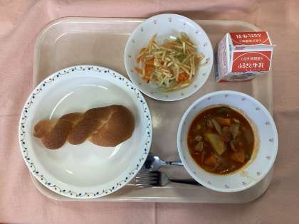 6月25日(火)の給食 公開日 2024/06/25 更新日 2024/06/25 できごと 今日のパンは、米粉を使った米粉パンです。ここ数年、米を粉にした「米粉」を使った料理が増えています。これは、自給率がほぼ100%の米をもっと食べようという取り組みや、小麦アレルギーの人が食べられるものを作る取り組みがあることがきっかけとなっています。農林水産省では、米消費拡大の取組の一環として、米粉の普及を目指しています。給食でも、米粉パンや米粉を使った料理を出すようにしていきたいと思います。 いいね(0)