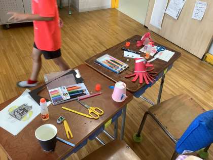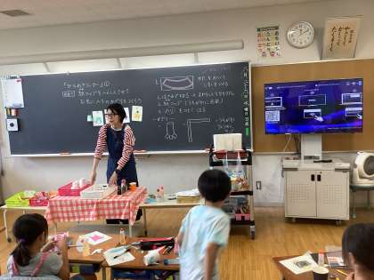 2年生は、紙コップを使った工作に挑戦しました。紙コップの形の特徴をつかんで、楽しい作品を作りました。