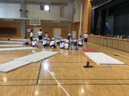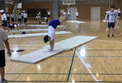 6年生は、それぞれ自分のめあてをもっていろいろな技に挑戦しました。身に付けた技を連続で行い、組み合わせています。