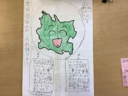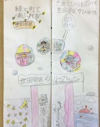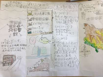 世田谷区を巡った後に、世田谷区の魅力を伝えるリーフレットを作成しました。地形や土地の使われ方、交通の様子などに注目して、世田谷区の良さをまとめました。