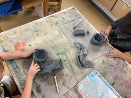 図工でオリジナルの茶わんづくりに挑戦しています。図工室の窯で焼き上げます。完成が楽しみです。