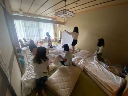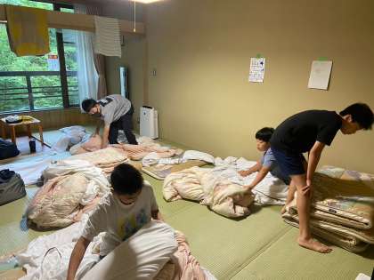 7/24 日光林間学園 朝起きると 公開日 2024/07/24 更新日 2024/07/24 できごと 子ども達の朝は忙しいです。 まだぼーとしている子もいましたが、検温、健康カードの記入、布団の整理、6時30分の朝会に間に合うようにみんなで協力して頑張っています。 いいね(0)