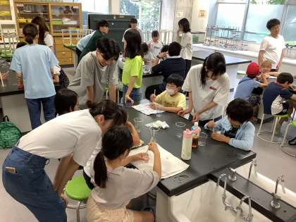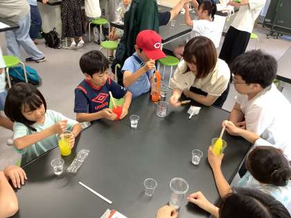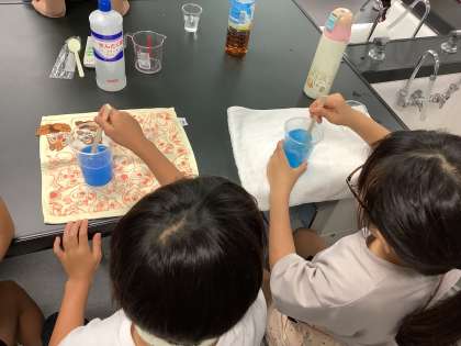 お兄さん、お姉さんに教えてもらい、スライム作りを楽しみました。