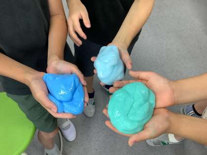SSGの皆さんに教えてもらい、気持ちのよい感触のスライムができあがりました。