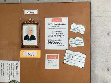 音楽室前の掲示板に色々な情報が掲示してあります。ぜひ音楽の知識にも興味をもってほしいです。