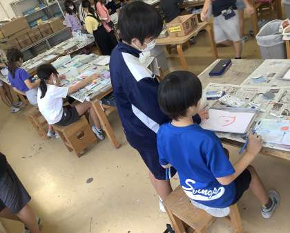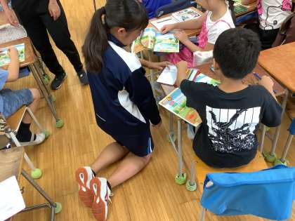 松沢中学校から3人の中学生が職場体験に来ています。本日は最終日です。今日は、中学年を中心にお手伝いをします。