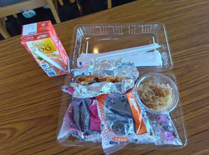 食堂でお弁当をいただきます。