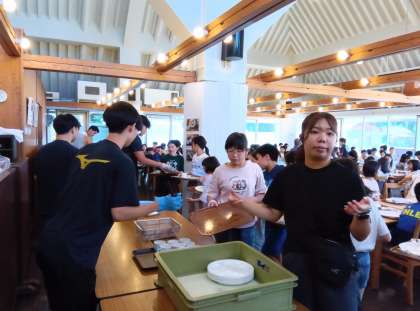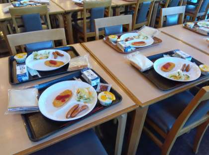 洋食の朝食です。係の子も手際よくやっています。片付けも上手になりました。