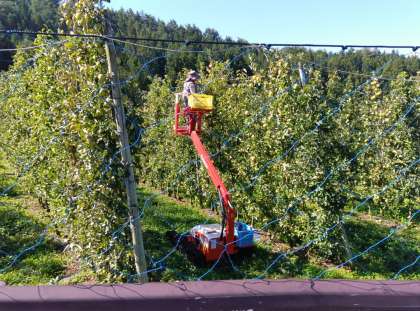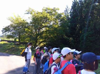 りんの栽培の工夫、ブルーベリー、オニグルミの木などを発見しました。