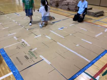 ダンボールを敷き詰めて、寝る場所を作ります。