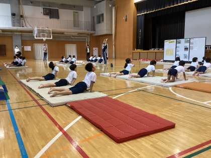 協議会では講師の先生から、ただ自由に運動させるのではなく、育てたい感覚が身に付けられるよう意図した場が設定されており、その上で児童が楽しんで運動できること、またお話を作る上である程度行動の選択肢を用意しておくことで、児童がストーリー作りに悩まされすぎることなく運動への意識をより向けられること、などをアドバイスしていただきました。また、体育で安全面に配慮するのはもちろんの上で、形式的な指導にとらわれすぎず、もっとチャレンジして欲しいという激励もいただきました。