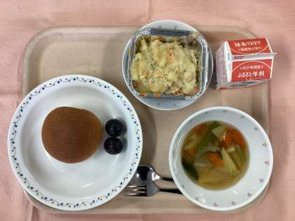 9月27日(金)の給食 公開日 2024/09/27 更新日 2024/09/27 給食 今日の給食 今日は、秋が旬のぶどう「巨峰」を出しました。最近は、いろいろな種類のぶどうがスーパーや八百屋さんに並んでいます。その中でも「巨峰」は、昔から根強い人気のある品種です。皮の色は黒っぽい紫色で大粒のものが多いです。強い甘みの中に、程よく酸味もあります。生産地としては、山梨県や長野県が有名です。給食で使った「巨峰」も山梨県産のぶどうです。 いいね(0)