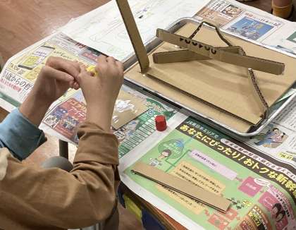 前回のイメージを元に、段ボールを使って作品を作り始めました。