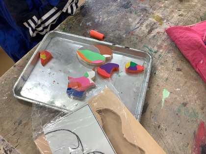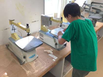 5年生は、図工で木工作に挑戦しています。糸鋸を使ってパズルを製作中です。色や形を工夫して、それぞれ面白いパズルができそうです。
