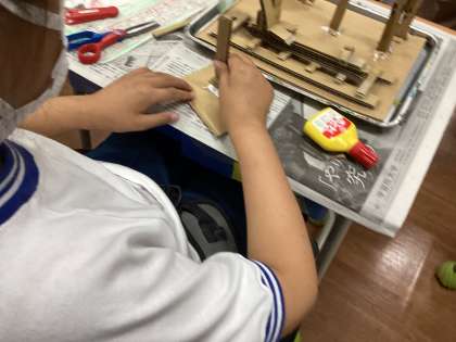 段ボールで作品を作っています。形が完成に近づいてきました。
