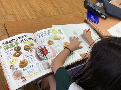 すがたを変える大豆で学んだことを生かしながら、今度は自分が調べた食べ物のひみつを教える学習に入りました。まずは、自分の興味のある食べ物について調べるところからです。