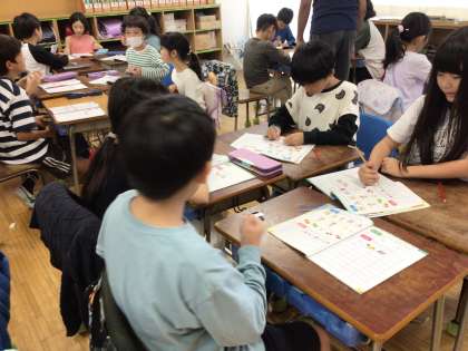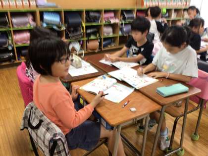 Whatdoyoulike?の表現を使って、友達の好きなものを聞き合っています。