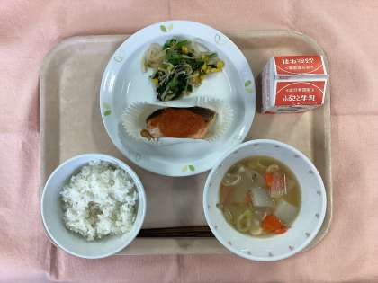 10月28日(月)の給食 公開日 2024/10/28 更新日 2024/10/28 給食 今日の給食 今日は、秋らしい「鮭のもみじ焼き」を作ってみました。もみじ焼きは、すりおろした人参に味噌や砂糖、味醂などの調味料を混ぜて鮭にかけて焼いた秋をイメージする料理です。焼き上がりの鮮やかな「オレンジ色」をもみじに見立てて作りました。味噌の代わりに人参のすりおろしとマヨネーズをのせて焼いても美味しく作ることが出来ます。 いいね(0)