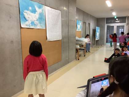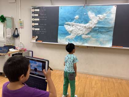 10/30 続くじらぐも 1年生 公開日 2024/10/30 更新日 2024/10/30 できごと 1年生の国語「くじらぐも」の学習です。 わたで作ったくじらぐもに向かって音読で気持ちを表現しました。 いいね(0)