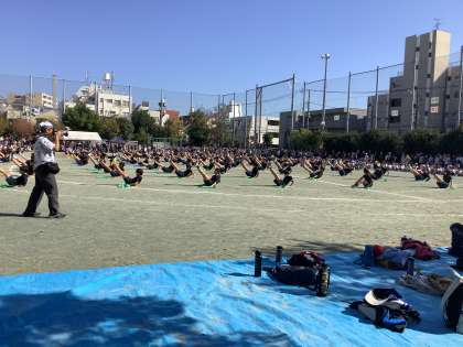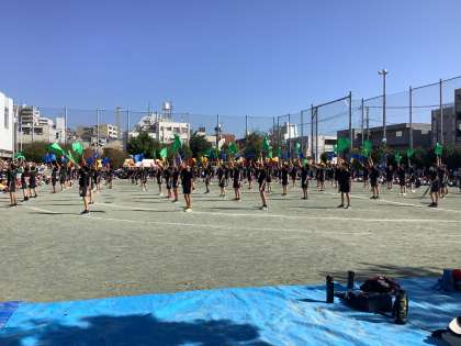 6年生の表現は、1年生からの運動会を振り返りながら進行します。最後には、かっこいいフラッグで、一糸乱れぬ圧巻の表現でした!