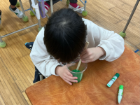 3年生からリコーダーを習います。息の使い方に気をつけて、歌うようにふく練習をしました。
