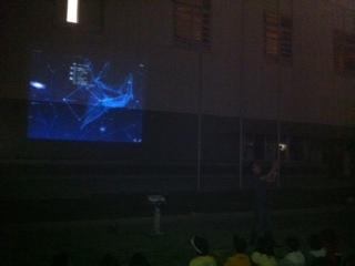 体育館の壁に星を映し、ちょっとしたプラネタリウム