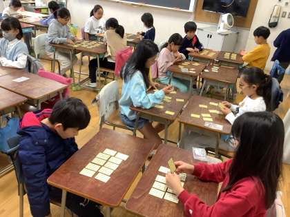 11/15 百人一首 4年生 公開日 2024/11/15 更新日 2024/11/15 できごと 百人一首を行っています。 対戦の前には上の句と下の句がすぐつながるように一生懸命覚えています。 いいね(0)