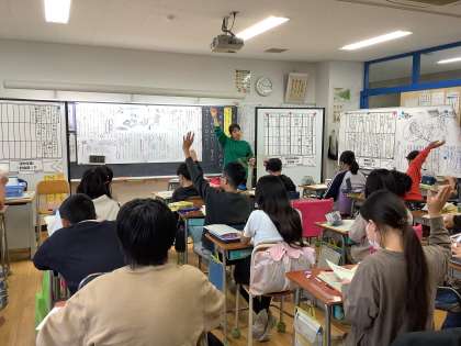 11/20 鳥獣戯画を読む 6年生 公開日 2024/11/20 更新日 2024/11/20 できごと 6年生の国語では「『鳥獣戯画』を読む」を教材にして、文章の工夫を読み取り、それを生かして書く学習を進めています。 今日は、文章と絵を結びつけて、筆者の書きぶりを読み取りました。表現の工夫、絵を見る視点などを見つけることができました。 いいね(0)