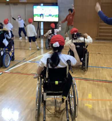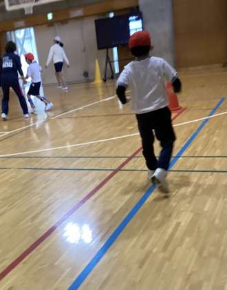体育館で、走ったりダンスをしたりしてたくさん体を動かしました。