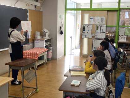 来週から蔵書点検があるため、今週は本を借りることができません。そこで、司書の先生に読み聞かせをしていただきました。