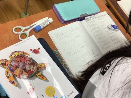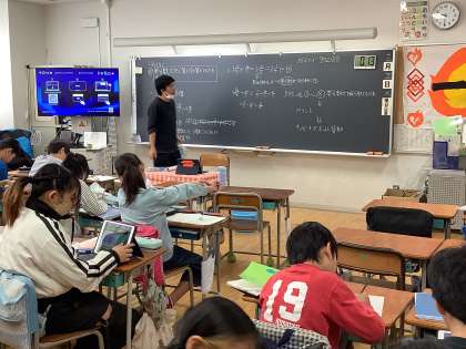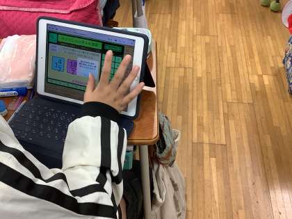 4年生は分数の学習をしています。帯分数と帯分数のたし算は、どのように考えれば答えを導けるのか考えました。練習問題で習熟を図ります。