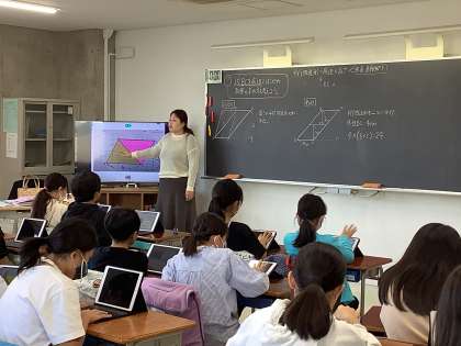 5年生では、平行四辺形や三角形の面積の求め方を学習します。今まで習った考え方を使って、いろいろな求め方を見付けます。