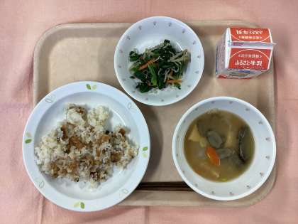12月6日((金)の給食 公開日 2024/12/06 更新日 2024/12/06 給食 今日の給食 今日の主食は「アジのひつまぶしふう」を作りました。作り方は、アジを短冊に切って、生姜汁で魚の臭みを取り、片栗粉をまぶして油で揚げます。次に、砂糖や醤油、味醂などの調味料を煮詰めて、揚げたアジをからめます。最後に、ご飯と混ぜたら出来上がりです。甘口のタレなので子供たちも食べやすく、美味しいっていう声が聞こえてきました。 いいね(0)