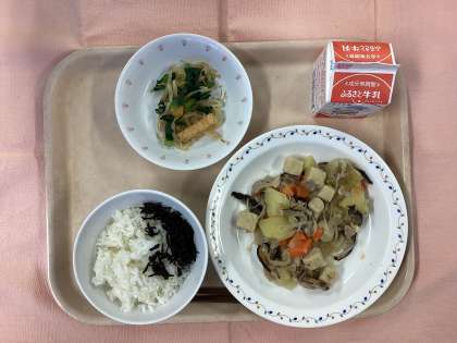 12月10日(火)の給食 公開日 2024/12/10 更新日 2024/12/10 給食 今日の給食 今日は、ご飯のお供に「ひじきふりかけ」を作りました。ひじきには、皮膚や粘膜を健康に保つ働きがあります。また、食物繊維も豊富にあり便通を整えて便秘を予防するほか、体内の脂質や糖、ナトリウムなどを吸着し、排出する働きもあります。そのため、生活習慣病の予防や改善の効果が期待されている食材の一つでもあります。 いいね(0)