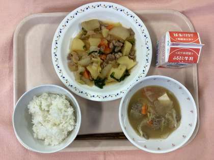 今日は「せたがや育ち給食」として、世田谷区の農家で育てられた「大蔵大根」を使って「大蔵大根の鶏五目煮」を作りました。大蔵大根は、世田谷区の大蔵という地域で生まれた品種です。「大蔵大根」は、冷涼な気候を好み、寒さには強い野菜ですが、高温には弱く生育が抑制されてしまう傾向があります。今年の「大蔵大根」は、暑さが続いたために生育が悪く小さかったですが、美味しく煮えました。地元の野菜を食べられて嬉しいですね!