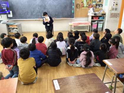 12/20 読み聞かせ 1年生 公開日 2024/12/20 更新日 2024/12/20 できごと 今日の朝の時間は読み聞かせボランティアの方がきてくださいました。冬の絵本を紹介してもらいました。1年生がみんな集中して見ていました。 いいね(0)