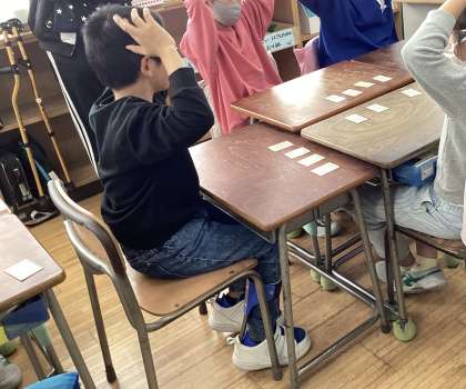 3年生と4年生のうさ松タイムがありました。3年生対4年生でチームに分かれて百人一首をしました。